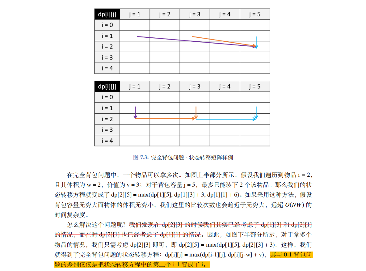 对于完全背包的图形解释,我截取《LeetCode_101》内的解释展现出来: