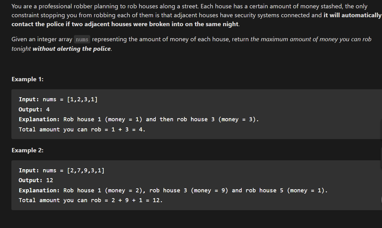 Explanation: You cannot rob house 1 (money = 2) and then rob house 3 (money = 2), because they are adjacent houses.