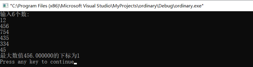2.使用一维数组,从键盘上接收6个数,找出最大的那个元素并记录下它的下标。