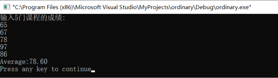 6.编写程序,通过一维数组接收5门课程的成绩,并输出平均分数。