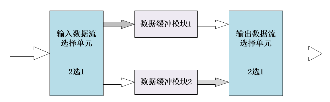第一个缓冲周期:数据流通过“输入数据流选择单元”将数据写入到“数据缓冲模块1”。写完之后进入第二个缓冲周期。