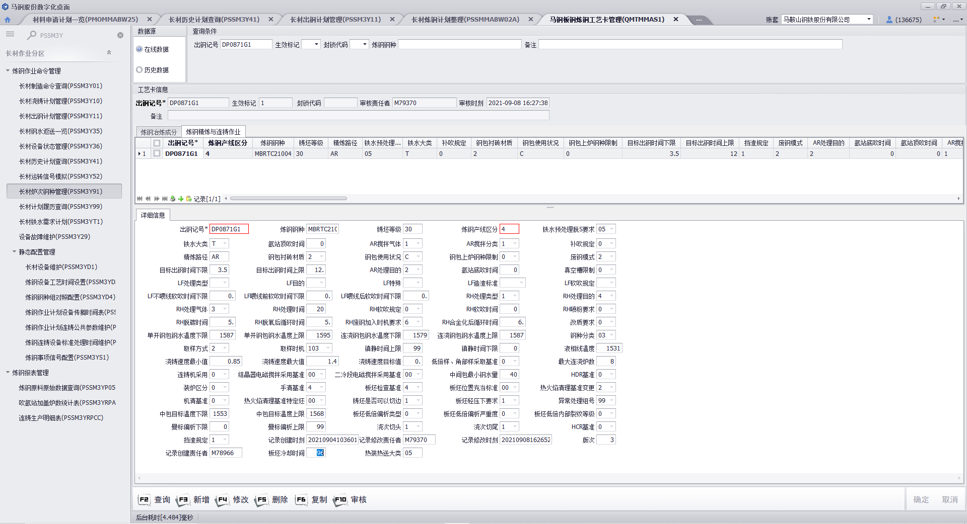 质量工艺卡画面下发,材料申请收池会将缓冷时间写入备用字段INGOT_COU,在炼钢计划下发时会去静态表校验根据出钢记号,还冷时间