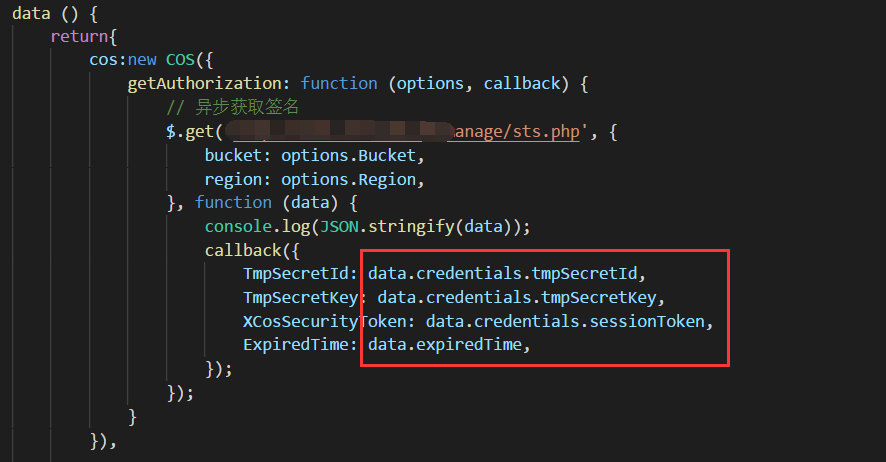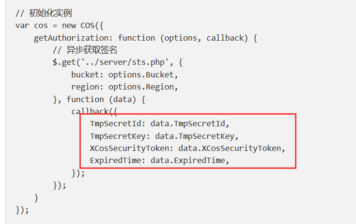 cos-js-sdk-v5使用sts.php获得的数据结构和demo代码上的不一致