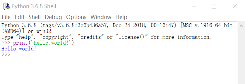 打开IDLE,默认的就是交互式编程,类似于一个CMD窗口。