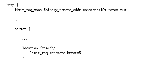 limit_req_zone $binary_remote_addr zone=myRateLimit:10m rate=2r/s;