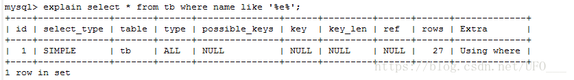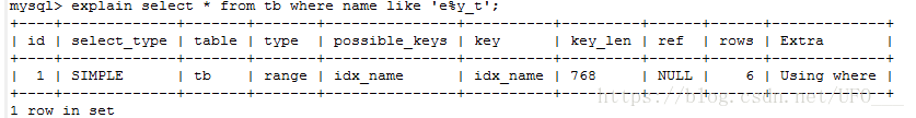 把sql修改一下在进行查询【explain select * from tb where name like 'e%y_t';】
