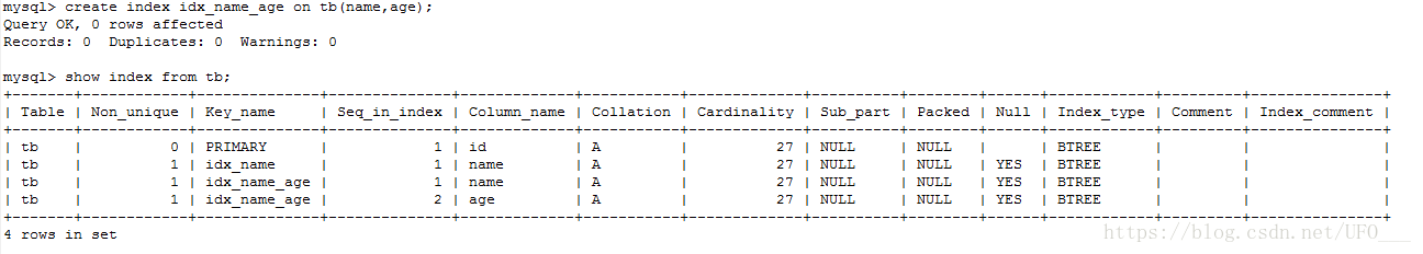 如果需要更多字段的数据而不单单是age的话,可以进行两次查询,第一次通过name来获取id(这一步是索引扫描),第二步拿获取来的数据在进行id匹配查询(这一步效率很高,ref或者const)。