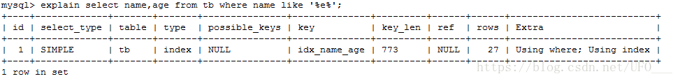 可以看到,查询是覆盖索引的,起码比全表扫描要好。