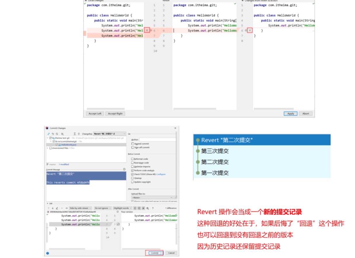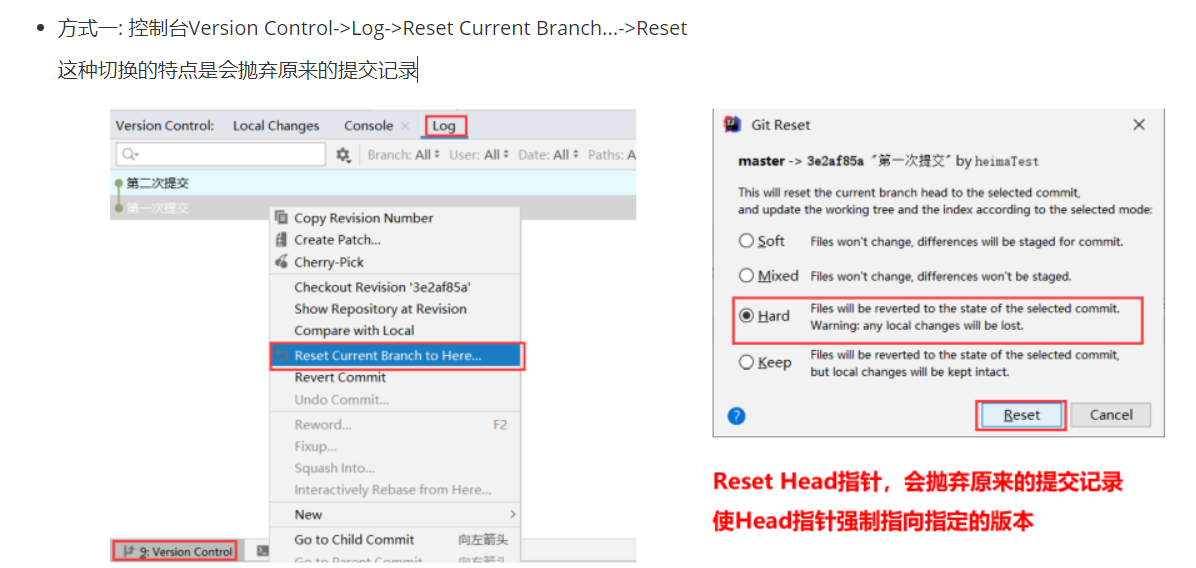 这种切换的特点是会当成一个新的提交记录,之前的提交记录也都保留