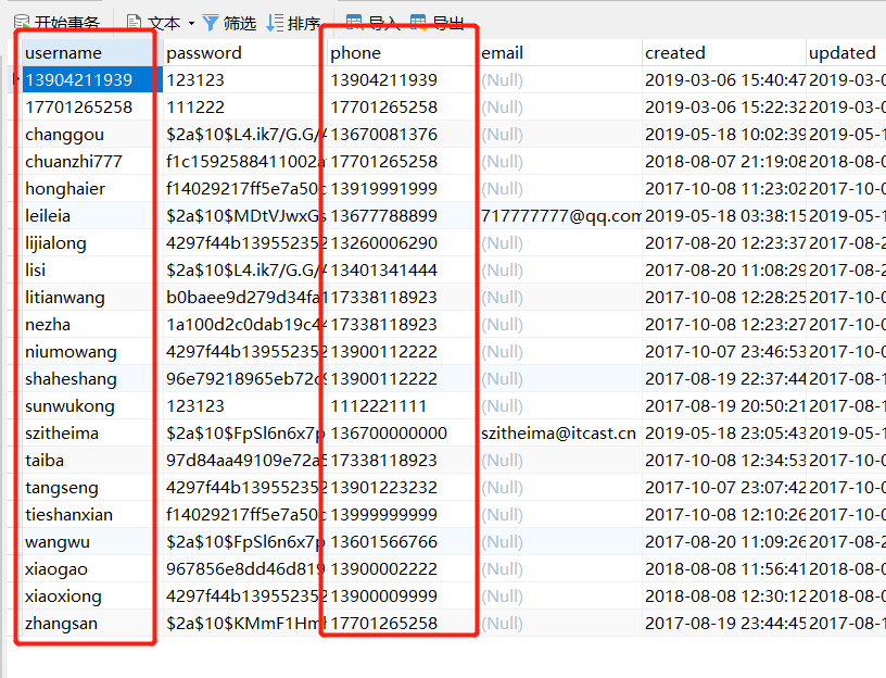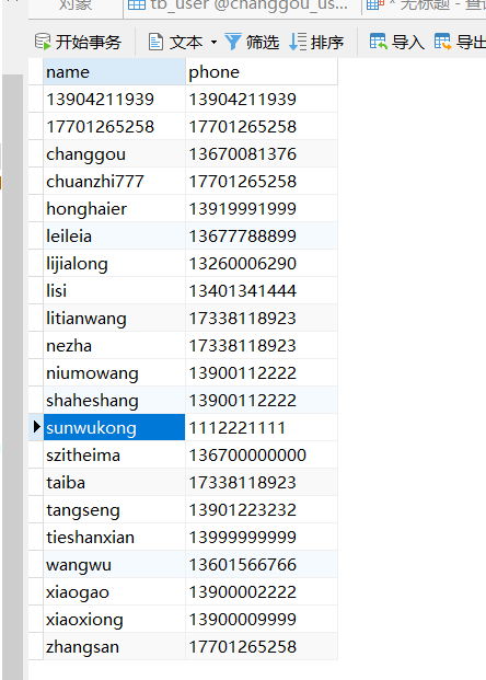 转存数据从tb_user的姓名,手机号 转移到bf_user中去