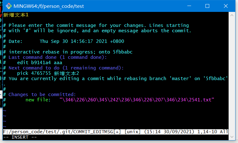 类似于linux的vim修改提交信息。