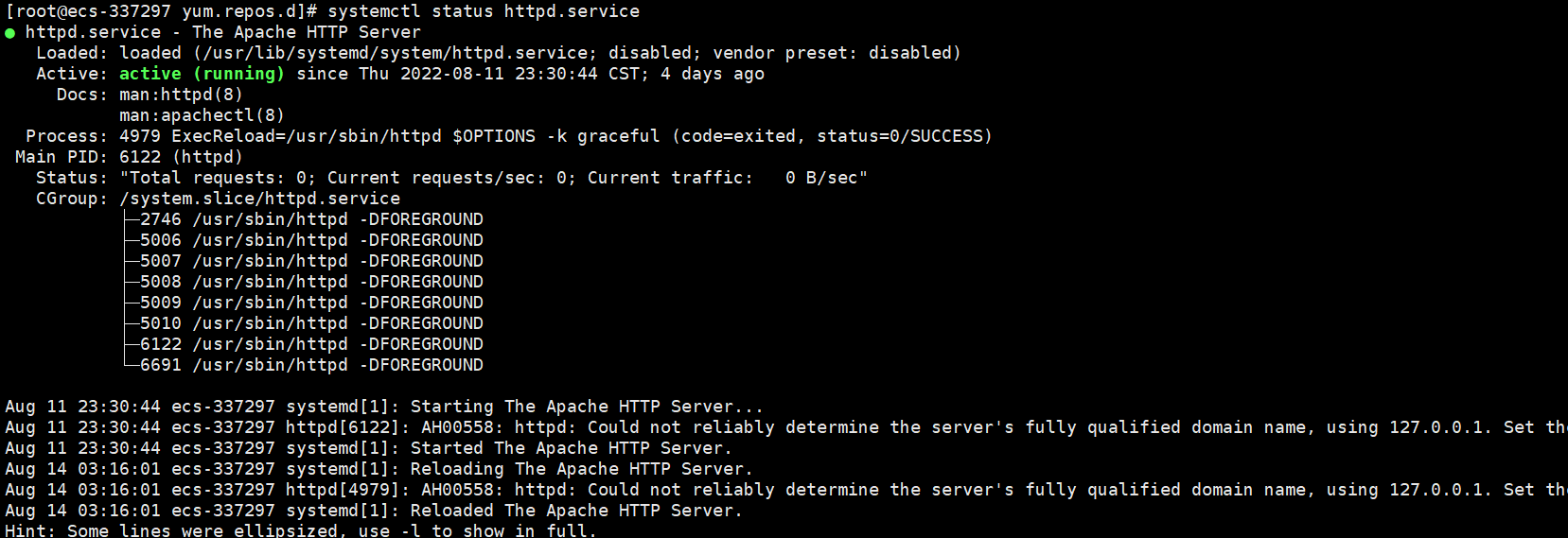 2.安装 yum install -y httpd,并启动systemctl start http.service ,查看启动状态 systemctl status http.service