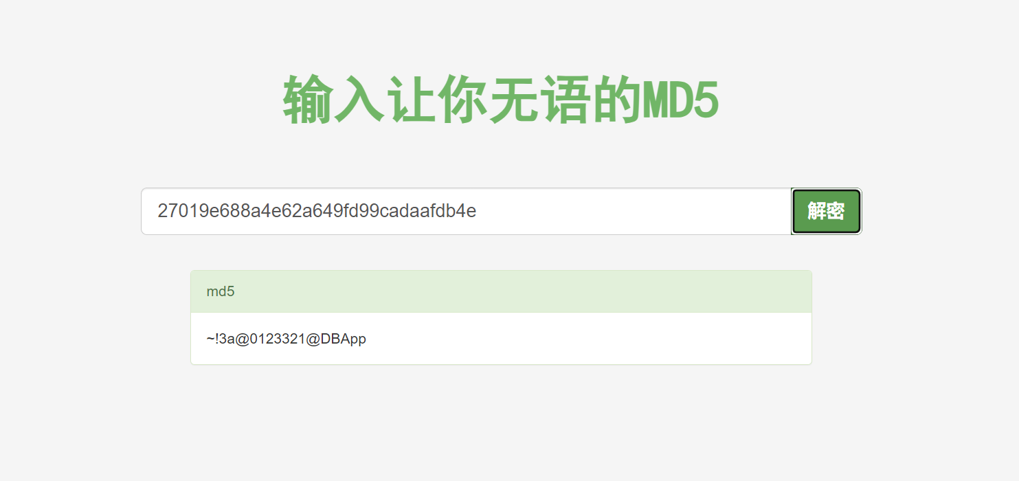 实际上,还有一种特别快捷的方法,既然我们已知MD5值,所以我们可以直接进行MD5的解密直接得到我们的密码: