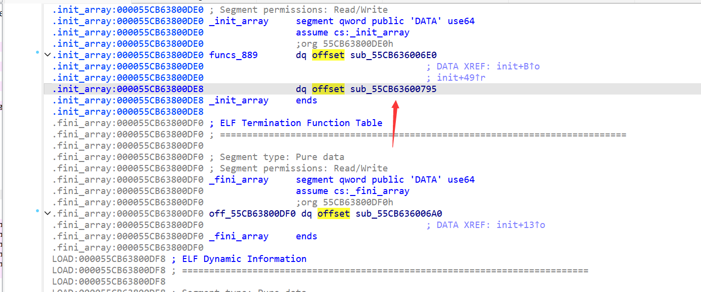 其中__libc_start_main将init作为初始化函数,将fini作为终止函数,我们跟进init函数看看请况