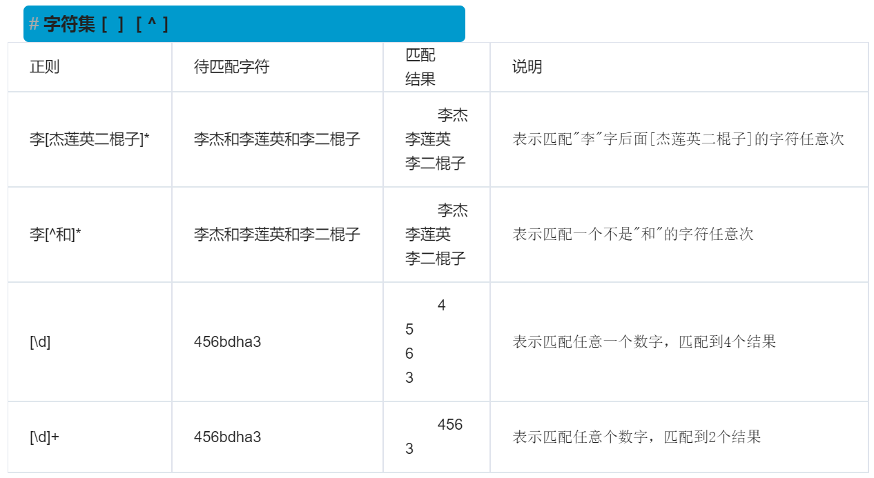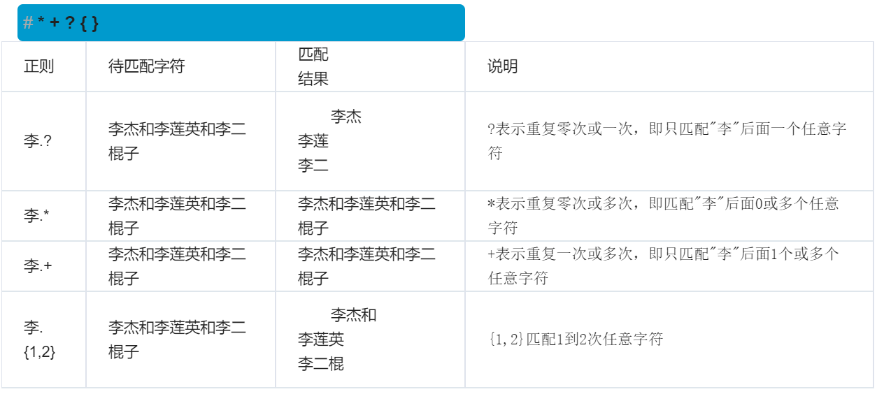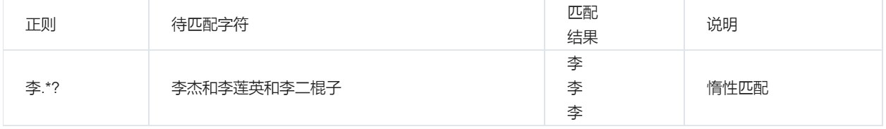 | 正则 | 待匹配字符 | 匹配结果 | 说明 |
