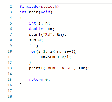 数据表达:整型变量int i,n;双精度浮点型变量double sum; n的值是输入进去的。