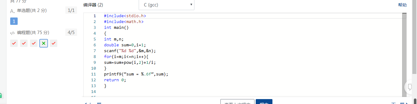 题目内容描述:计算序列和m2+1/m+(m+1)2+1/(m+1)+⋯+n2+1/n。