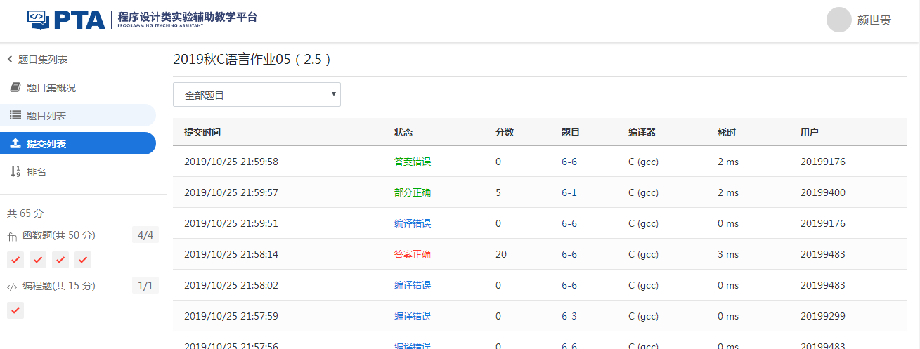 1.1.4 PTA提交列表及说明