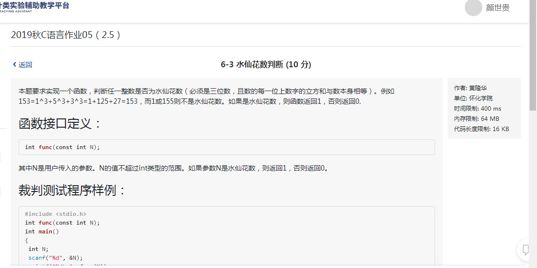 1.1题目名1水仙花数判断