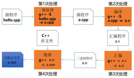第一阶段:预处理,把写的程序做预加工,例如将头文件拷贝到当前文件中等,此时还是源代码(源程序)。