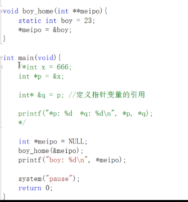 指针引用的好处:(之前说过,二级指针不但可以将变量通过参数传到函数内部,也可以将函数内部变量