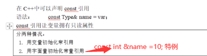 const int &a = 10;不如 const int a =10;这样定义。但c++语法支持。