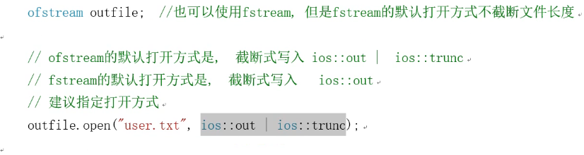 以ofstream默认方法打开文件(以写的方式),除非系统错,不然不会打不开文件,因为如果没有文件,会自己生成一个文件。