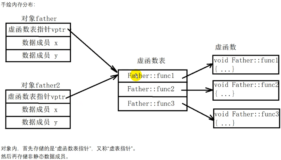 自己本身的虚函数地址会写入第一个虚函数表的最后;