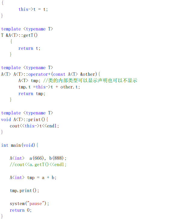 如果,类模板的实现与主函数在同一个文件中,那么与正常函数之间的用法是相同的,包含头文件即可。