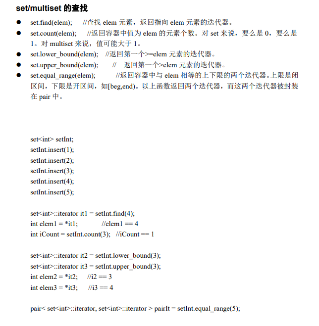 set.find(elem)这个功能函数,若是其中elem并不存在,那么返回的迭代器等于set.end().