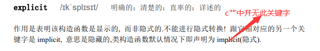 简单来说,在两个构造函数中都用了explicit关键字时,隐式构造无效。(string a = "adg"或者 const string & a= "dsss"都是隐式构造的。)