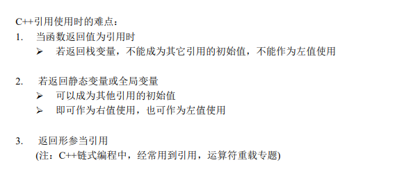 最好不要将栈变量返回值用于引用类型。若返回栈变量,不能成为其他引用的初始值,不能作为左值使用。(返回值是引用类型可以用引用来接,也可以用普通变量型来接)
