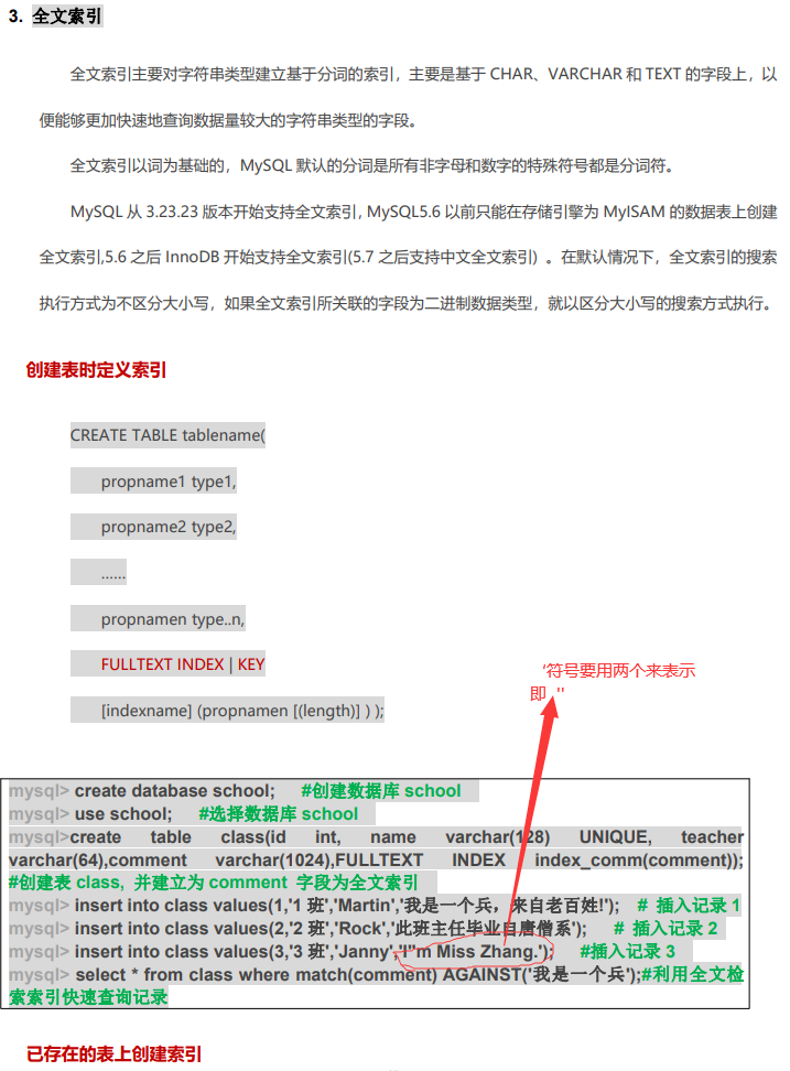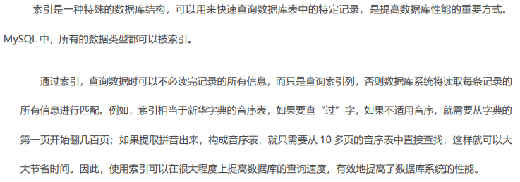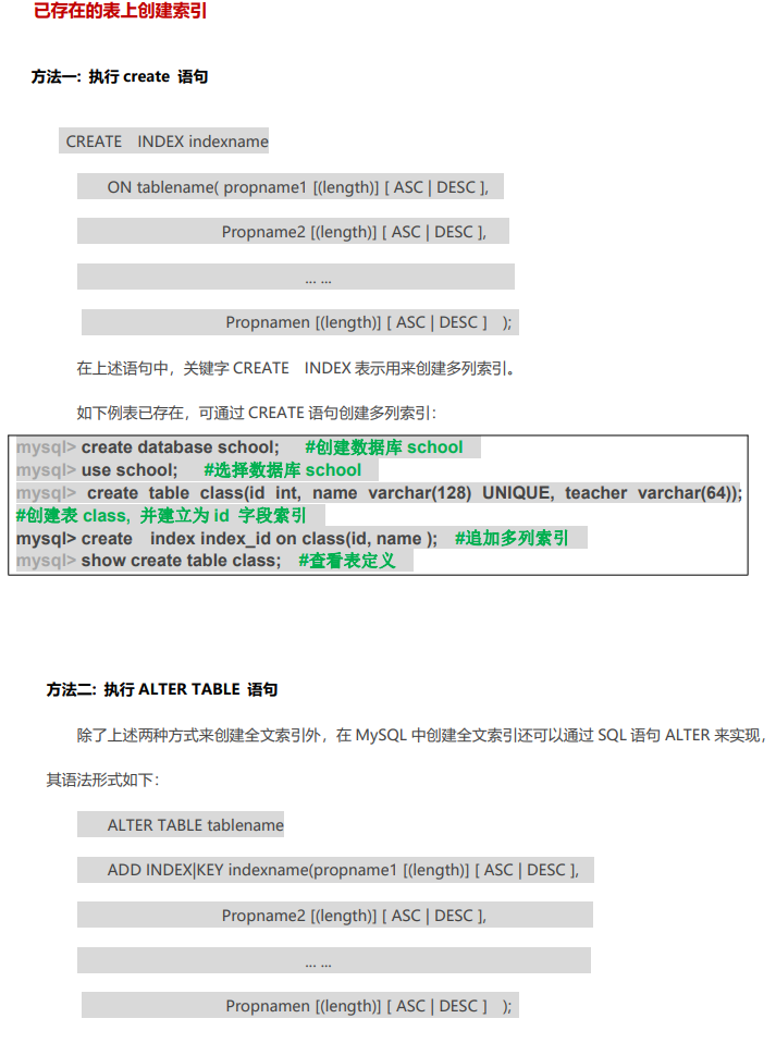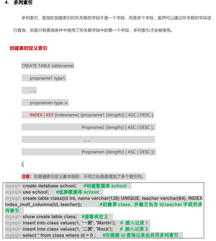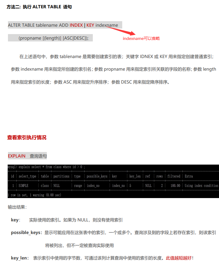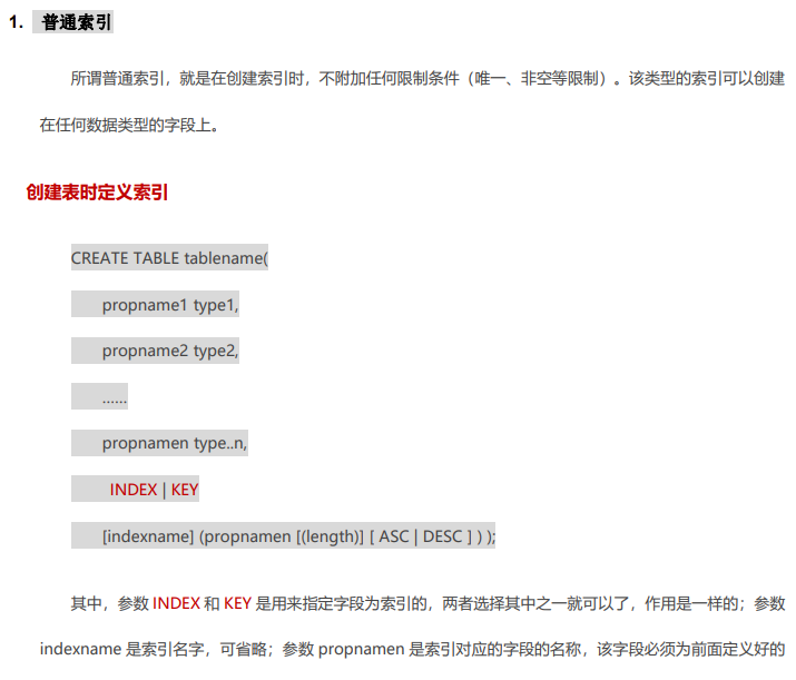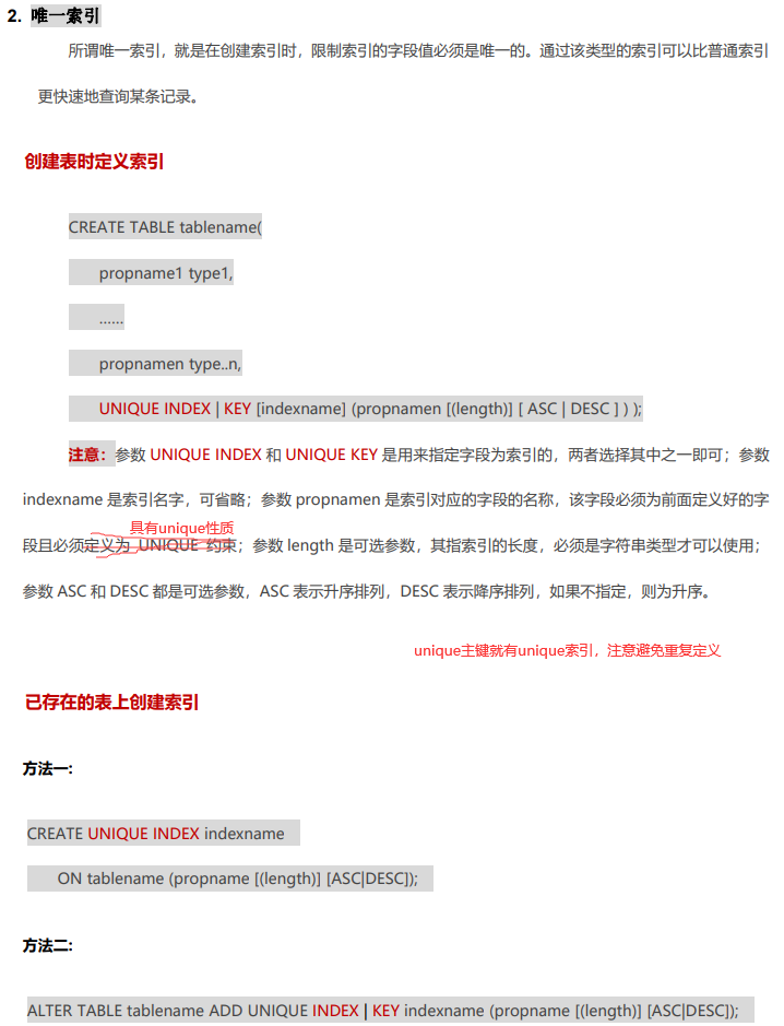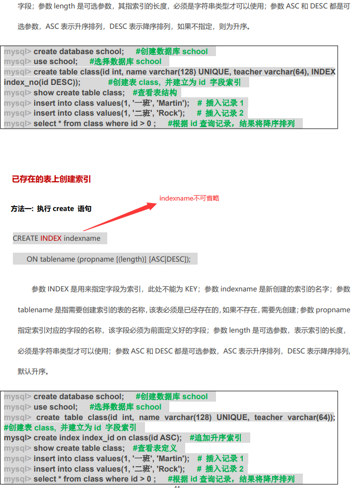 上述中若indexname可以省略,那么默认的indexname就是列名。这一点与列的完整约束是一致的。