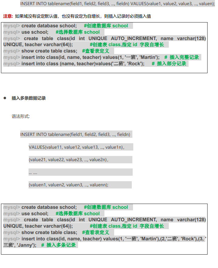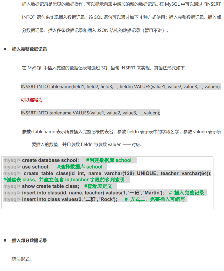 表数据的插入,更新,删除