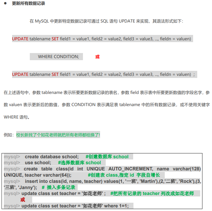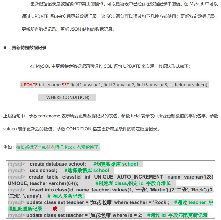 更新表中的数据记录