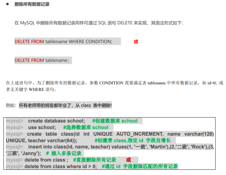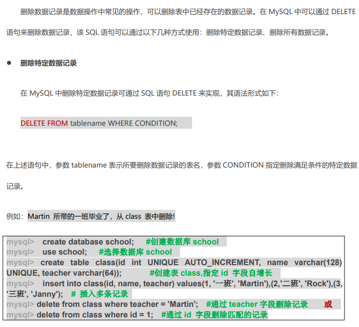 删除表中的数据记录