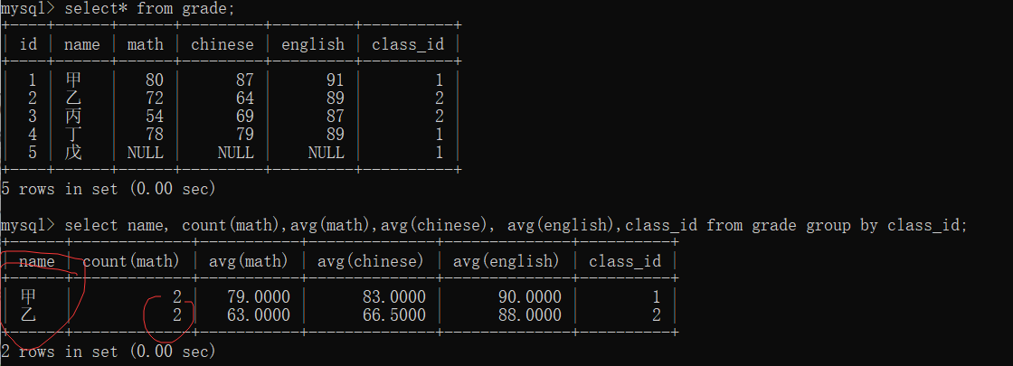 针对甲乙这两种不合理的情况,提出了统计分组查询。