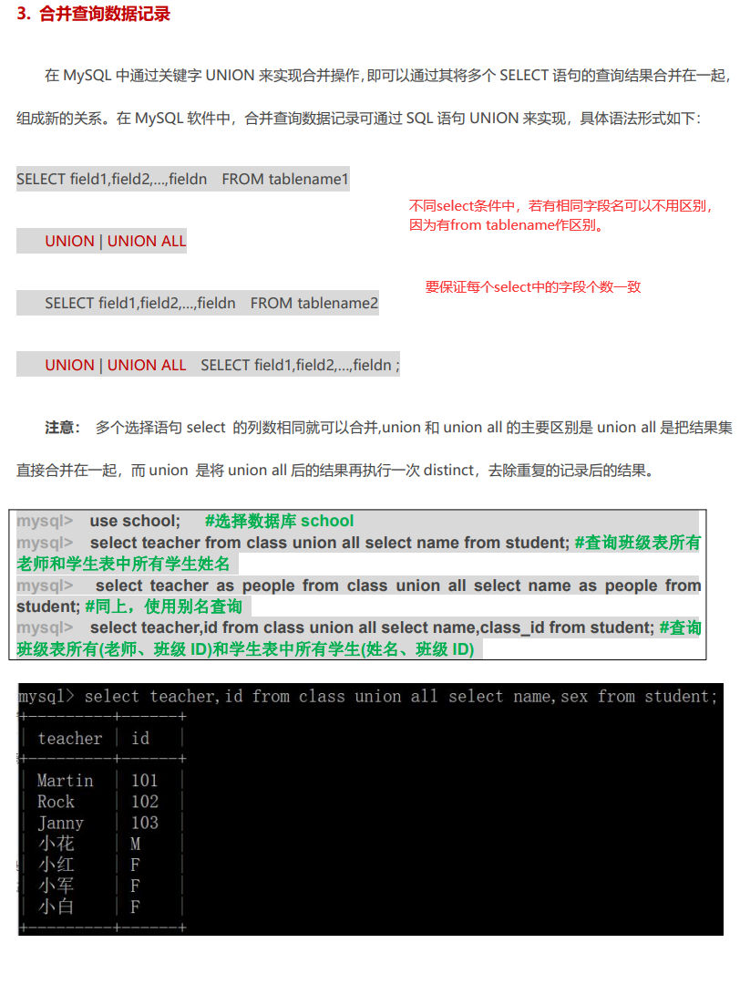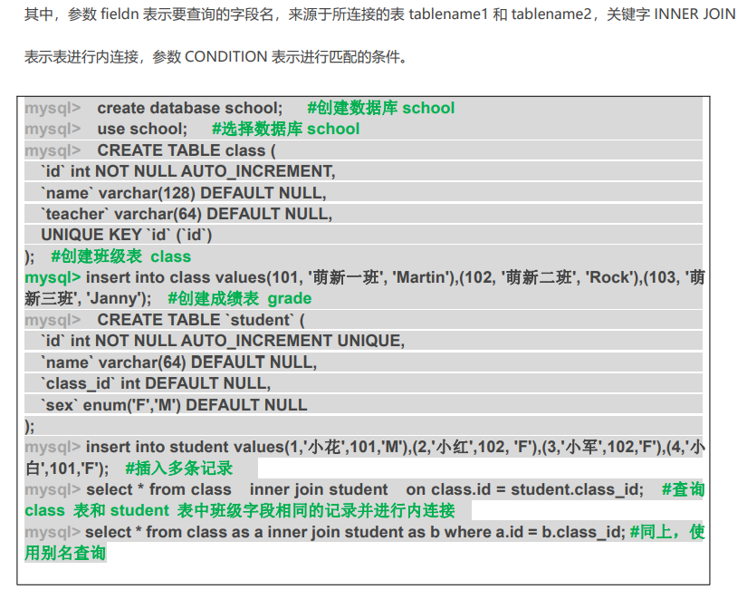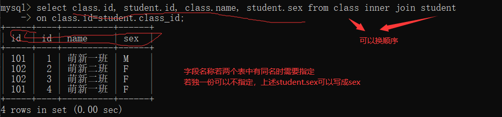 select field1,fieldn...:在上面的基础上只显示相应的列。且如果两个表有相同字段名要指定具体的表。