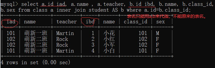 理解成两张表,即都是同一张表。使用自连接时必须起一个别名。