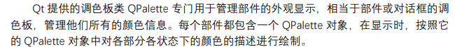 (通过QPalette的参数设置是可以对子孙部件中的颜色进行设置的。)