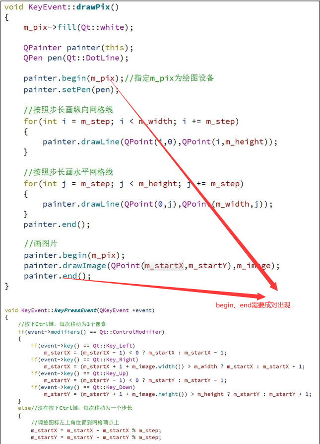 实现:通过QPainter画家在QPixmap位图上面进行绘制虚线和添加QImage的图片,重写重绘事件:QPainter画家在this类中(painter.begin(this))绘制此位图QPixmap。updata()函数会触发窗口重绘。