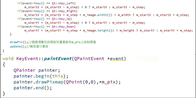 此类中,由于先将图片与线条画在了位图上,所以需要重绘事件来将此位图显示在窗口中(通过this),那么不进行重绘(声明没写/声明写了但函数为空),直接在drawpix()函数中一步到位可行吗?答:不可行。 (这里我的猜想是,直接drawpix()一步到位的时候,是在this中绘制了,但是由于之后的重绘事件的触发,刷掉了效果)