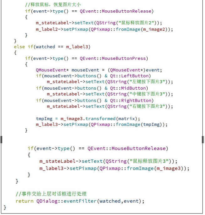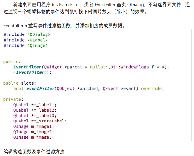 installEventFilter方法 给对象objA安装objB的事件过滤器,这样objB对象的eventFilter方法中就可以接收到objA对象的所有事件了,如果objA对象不想objB对象再监听自己的事件了就使用 removeEventFilter方法移除objB对象对事件的监听。