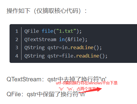 此外:QT帮助文档中对QIODevice::Text描述是说在读取时,将行结束符转换成 \n;在写入时,将行结束符转换成本地格式,例如 Win32 平台上是 \r\n