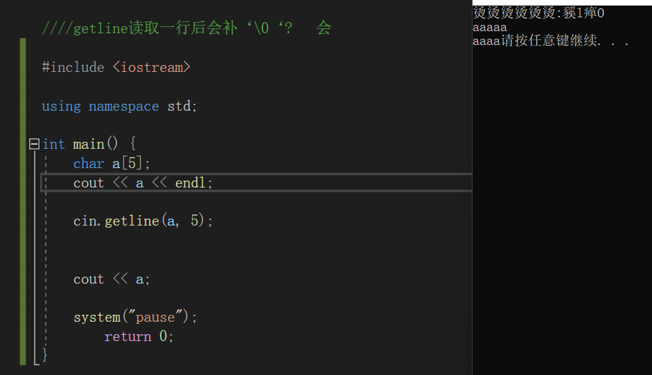 还有成员函数getline也是会补’\0的(注意这里不是全局函数getline):