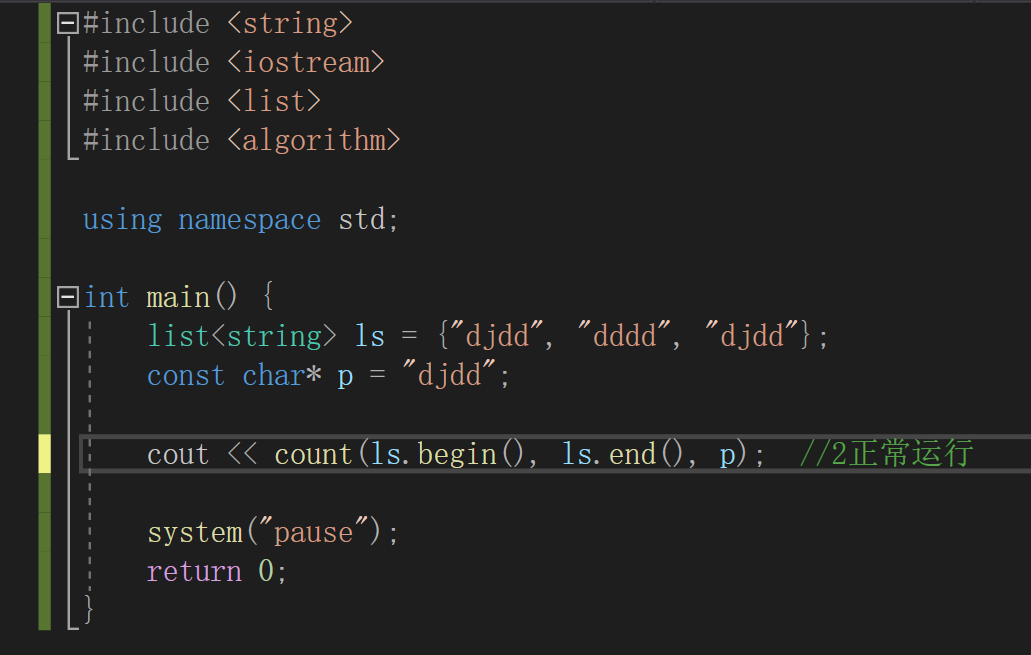 那么泛型算法中的count方法对于传入的值参数有什么要注意的呢: