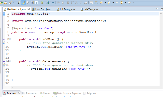 1) 创建com.wxt.jdk包,编写UserDao 和UserDaoImpl类