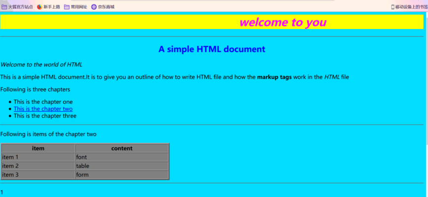 1.在文本编辑器“记事本”中输入如下的HTML代码程序,以文件名sy1.html保存,并在浏览器中运行。(请仔细阅读下列程序语句,理解每条语句的作用)