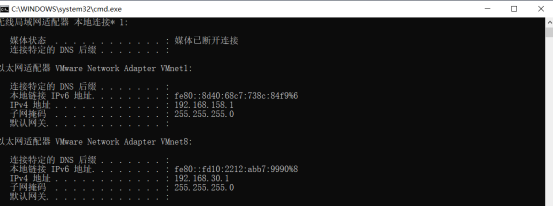 重启计算机,成功看到VMnet1和VMnet8网络地址,设置成功。