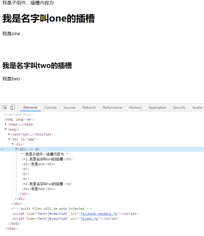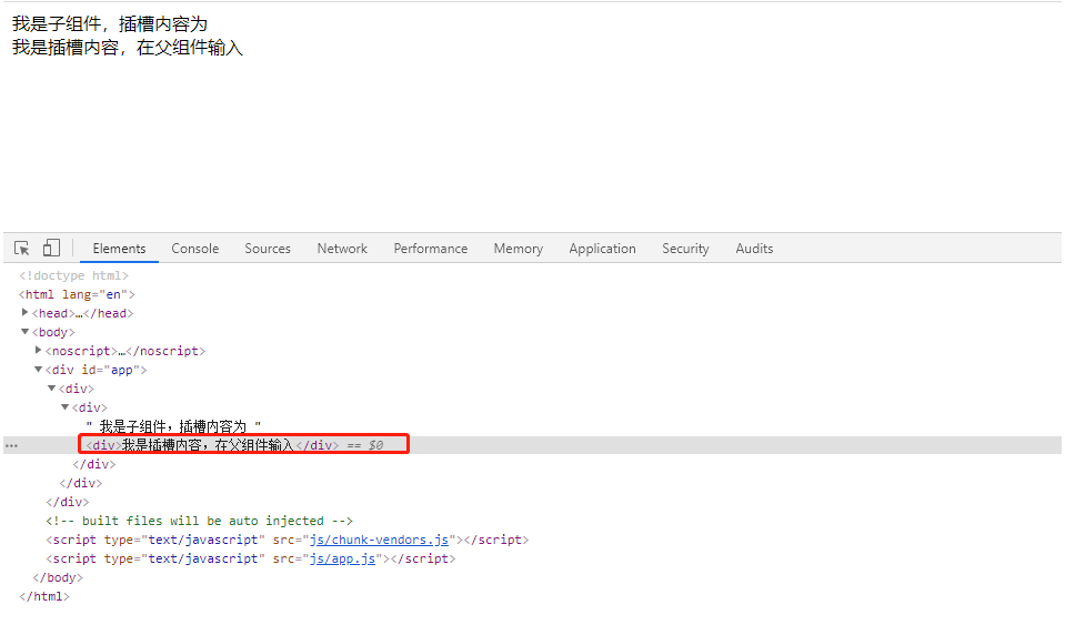 父组件和子组件的插槽顺序调换,来看一下页面显示结果